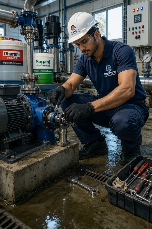 TitanTech Engineering Services is a trusted dealer of Dharani Pumps and Suganj Eco Chemicals, delivering reliable solutions for industrial, commercial, and household applications.